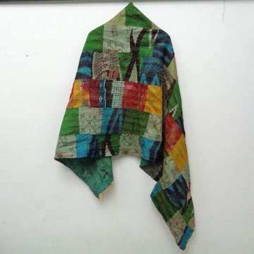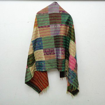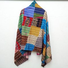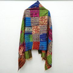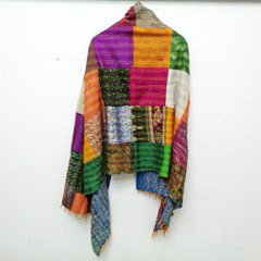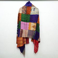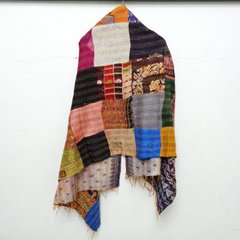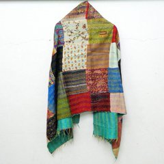 Handmade patchwork long Silk Kantha Scarf Head Wrap Stole Dupatta Hand Quilted Women Shawl KT42